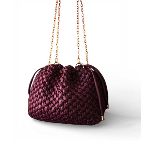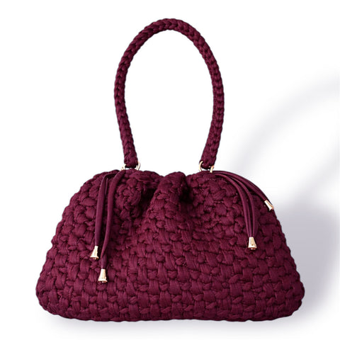 Borsa a secchiello maxi all'uncinetto bordeaux
