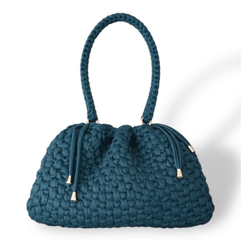 Borsa a secchiello maxi all'uncinetto verde