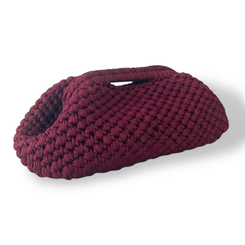 Clutch all'uncinetto in velluto bordeaux