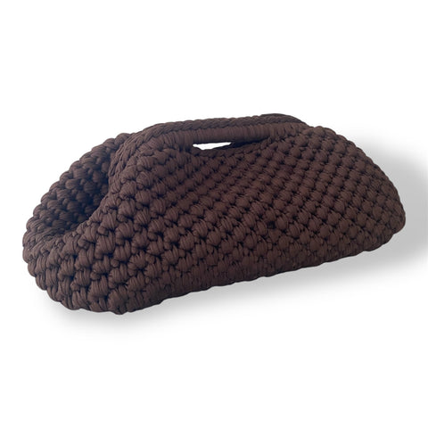 Clutch all'uncinetto in velluto marrone