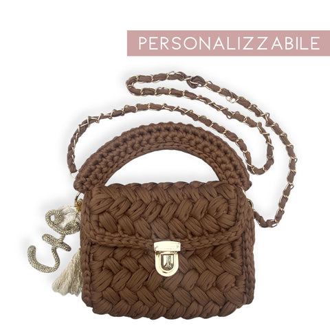 Scopri l’eleganza artigianale di questa borsa realizzata a mano in lana fluffy in vari toni sfumati del grigio, perfetta per completare ogni outfit con un tocco unico. Ogni dettaglio è curato con passione: la borsa è arricchita da due raffinati ciondoli e da un charm personalizzabile con la tua iniziale, disponibile in diversi modelli e materiali.